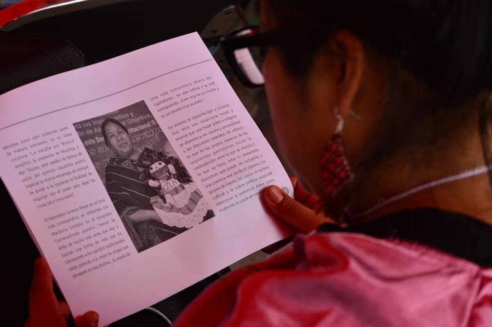 Marichuy es una voz que representa muchas otras voces, es la voz de las mujeres indígenas que luchan en la defensa de su territorio, su cultura y sus comunidades; es la palabra de los pueblos originarios, al mismo tiempo, la voz de las mujeres que luchan contra la discriminación ancestral y patriarcal en sus propias comunidades y espacios de lucha: “…pues hay hombres que se sienten dueños de las mujeres. Esta ya es mi esposa y ya no le vuelve a hablar a nadie… Hay mucho alcoholismo y golpean a las mujeres” nos recuerda Guadalupe Vázquez Luna, Concejala tzotzil de Acteal, Chiapas.[2]
